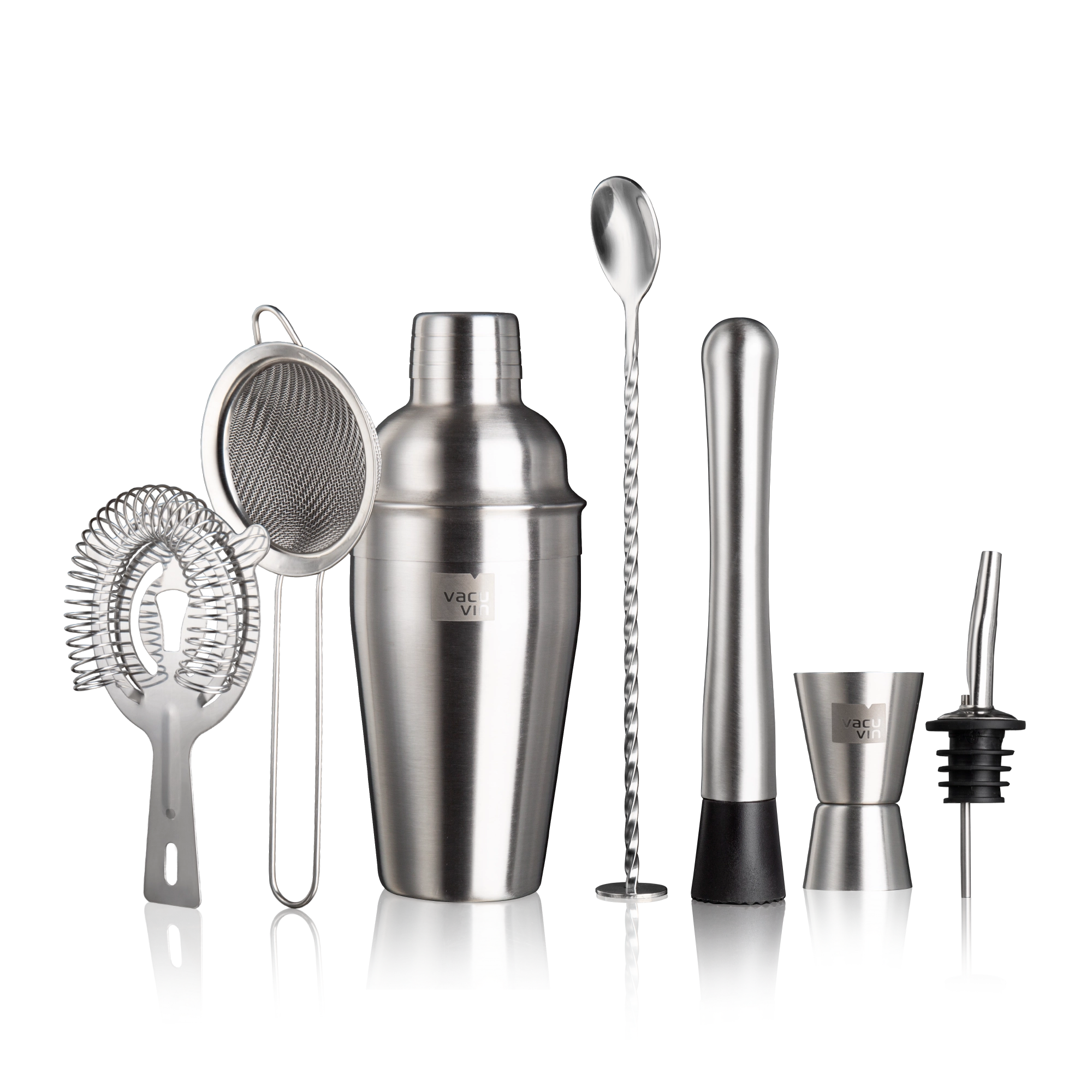 Mixen, Rühren und Servieren von Cocktails wird mit diesem7-teiligen Set ganz einfach. Die Edelstahl-Utensilien sindbenutzerfreundlich und lassen sich leicht reinigen – perfekt fürjeden Anlass